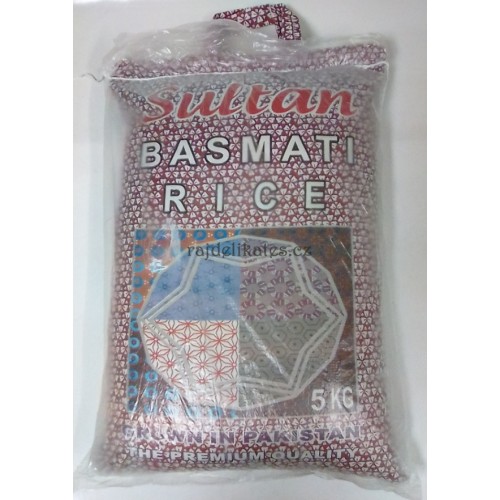 Pakistánská rýže Basmati v nejvyšší kvalitě v 5 kg pytlíku s uchem.
