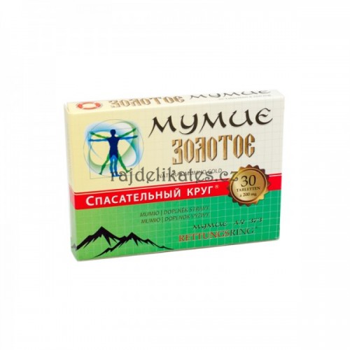 Zlaté Mumio je určen k posílení organizmu, obsahuje mnoho minerálních látek, podporuje krvetvorbu, obranyschopnost, zpevňuje kosti; vinikajcí adaptogen.
