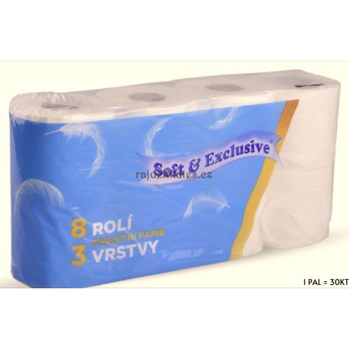 Balení: 8 rolí, 3 vrstvy, 100% celulóza, 14 metrů/role