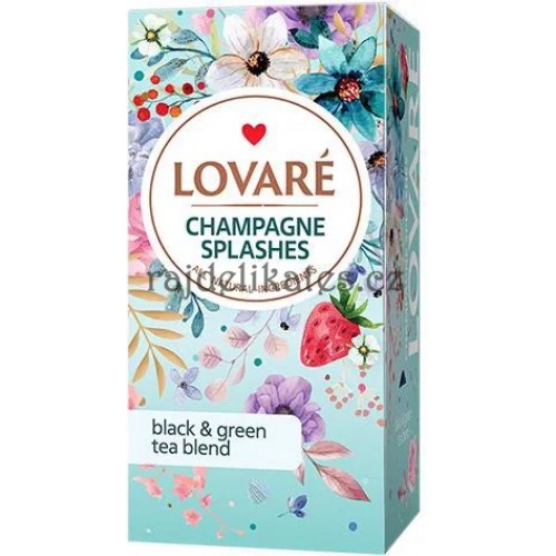 Čaj Černý a zelený čaj LOVARÉ Champagne Splashes Vás zláká svou sladkou chutí s lehce kyselým nádechem.
