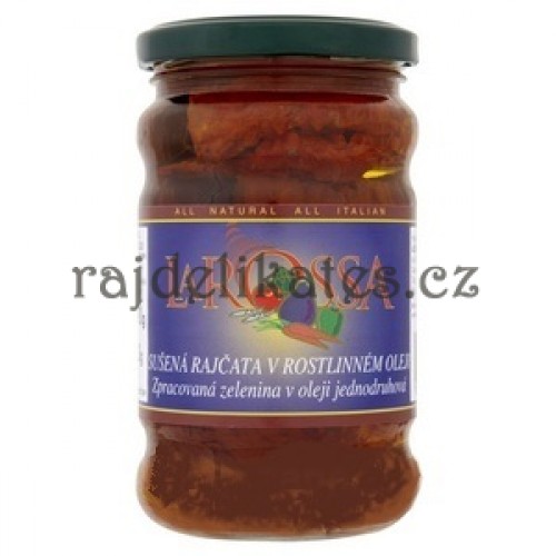 Složení: Sušená rajčata, slunečnicový olej, oregáno, česnek, chilli paprika, vinný ocet kvasný, jedlá sůl, regulátor kyselosti: kyselina citronová.