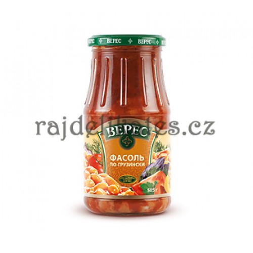 Fazole v gruzínské z "Veres" obsahuje zeleninu pěstovanou na jejich pozemcích, pečlivě vybrané koření a kořeněné bylinky.